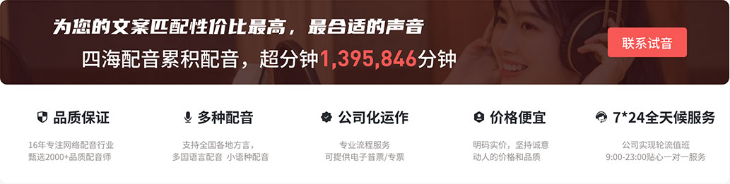注:價格不含稅,咨詢客服本站標注配音價格供參考,客服有權根據實際稿子難度計價,每位老師均有起錄價。 支持正規發票開具